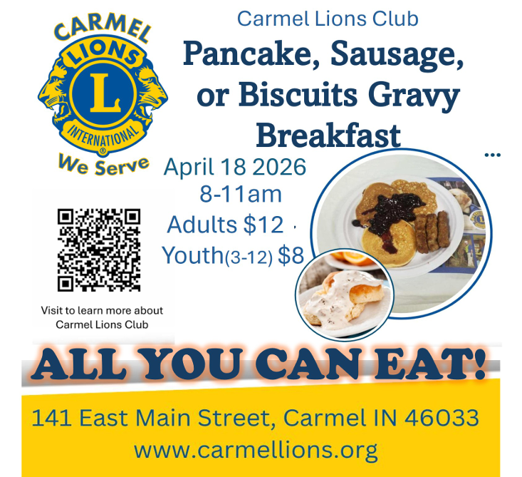 Start your morning right with stacks of fluffy pancakes, biscuits and gravy, sizzling sausage, and hot coffee, all while supporting a great cause! The Carmel Lions Club is hosting its annual Pancake Breakfast, bringing the community together for good food and fun.